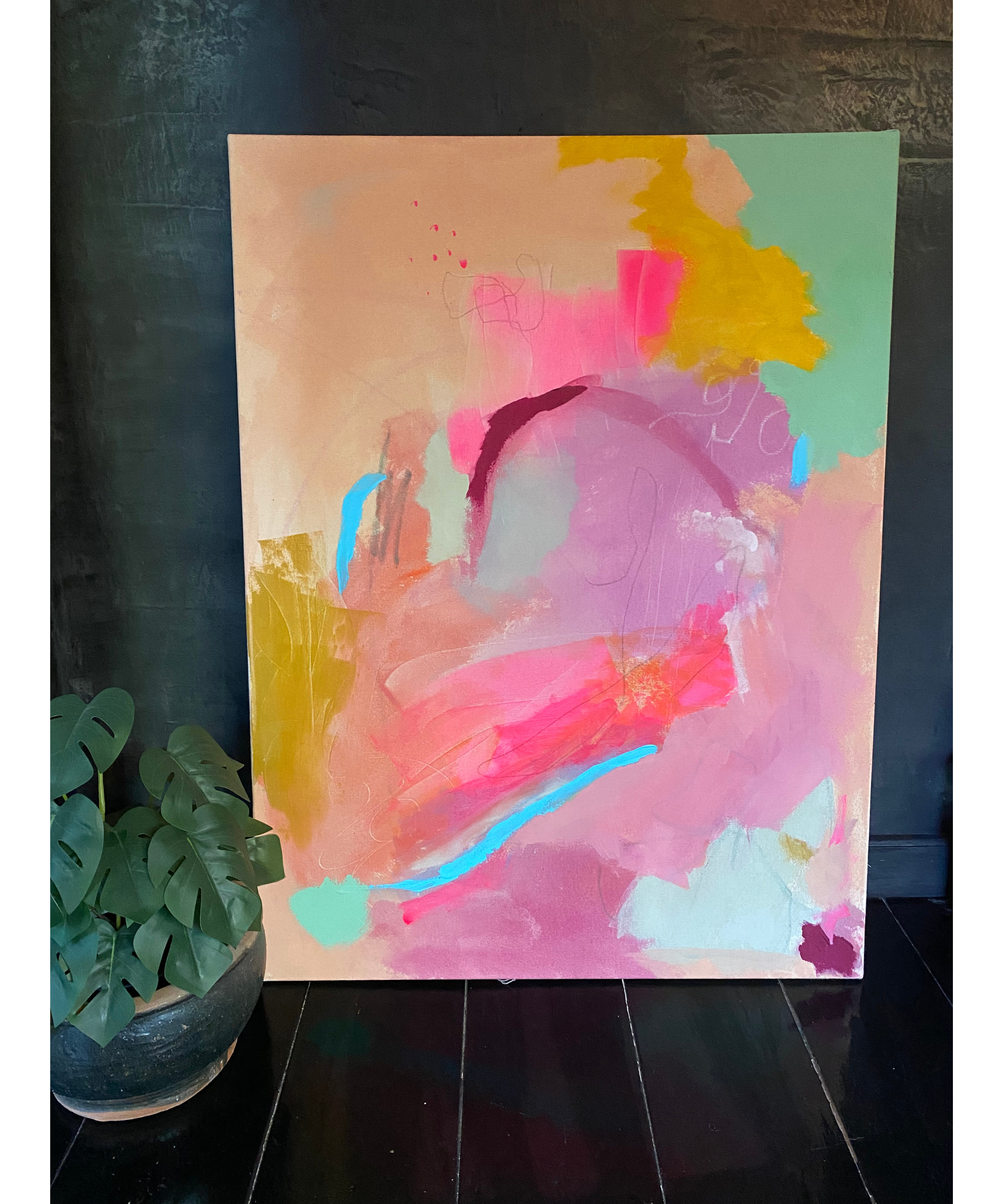 All my paintings will ship un-stretched, it saves shipping cost and is much safer for the painting as it’s not so fragile. Re-stretching upon arrival is necessary.